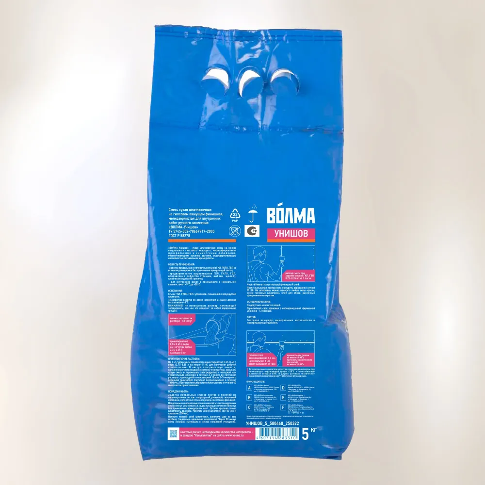 «ВОЛМА-Унишов» - сухая шпатлевочная смесь на основе натурального гипсового вяжущего, модицифированная минеральными и химическими добавками, обеспе-чивающими высокую адгезию, водоудерживающую способность и оптимальное время работы.